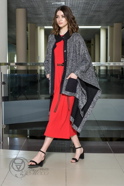 Стильное трикотажное пончо на кнопках. Длина изделия на рост 164-(62-83), на рост 170-(67-88). Длина рукава от горловины на 164-54 см, на 170-58 см.