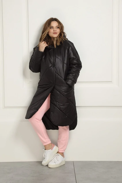 Стильный кардиган на кнопках с капюшоном и дизайнерской вышивкой -аппликацией с элементами кожи. Низ со скругленными бокамиразновеликой длины и функционально-декоративными молниями. Карманы в шах.