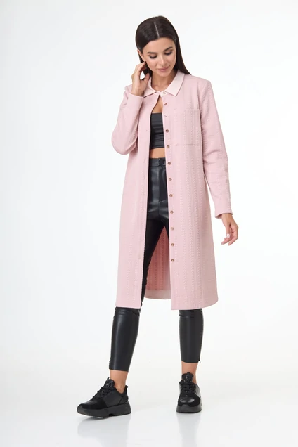 Кардиган из трикотажного полотна-актуальный предмет гардероба. Полуприлегающий силуэт, втачной длинный рукав, воротник сорочечного типа, застежка на пуговицы по всей длине. Нагрудные накладные карманы. В боковых швах функциональные карманы, внизу фигурные разрезы со сложной технологической обработкой. Дополнен съёмным завязывающимся поясом. Особенностью этой модели является его комбинаторность с другими предметами гардероба, а также использование кардигана самостоятельно. При съемке в образе использована модель AnelliStyle – 767 черный топ