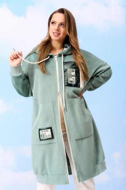 Кардиган из суперкомфортного теплого футера с хлопковой изнанкой и мягким ворсистым верхом. Застежка на молнию. Спереди 3 функциональных кармана, удобный объемный капюшон с кулисой. По низу изделия и рукавов трикотажные манжеты. Кардиган декорирован авторскими нашивками.