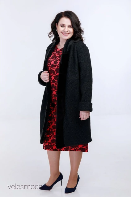 Кардиган женский прямого силуэта из буклированной ткани с отделкой по бортам искусственным мехом и с поясом.