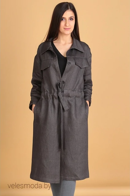 Кардиган выполнен с высокого качества- 100% льна, предназначенного для верхней одежды. Плотность ткани составляет 420 гр, в то время как, лен плательный составит 180 гр. Верхний слой ткани, лицевая сторона, обработана химическим составом, что бы изделие под воздействием окружающей среды и при носке не мялась, и был товарный вид изделия. Длина кардигана -114 см. Изделие со спущенным плечом, длинна рукава без учёта спуска плеча 62 см. Спинка цельная по полочке обработана нагрудная кокетка с клапаном, бочок изделия цельный с имитацией встречных складок шириной 4 см, в шве бочка и полочки обработан внутренний карман. Горловина обработана воротником, застежка на петли пуговицы, по спинке и части полочек настрочена кулиса с поясом- для нужного приталивания, все швы закрыты.