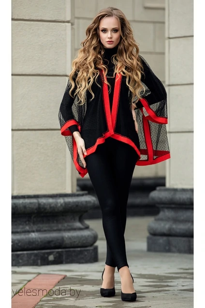 Пончо из шифоновой прозрачной ткани. Подойдёт как дополнение к вашему нарядному образу. Края обработаны из ткани красного цвета.