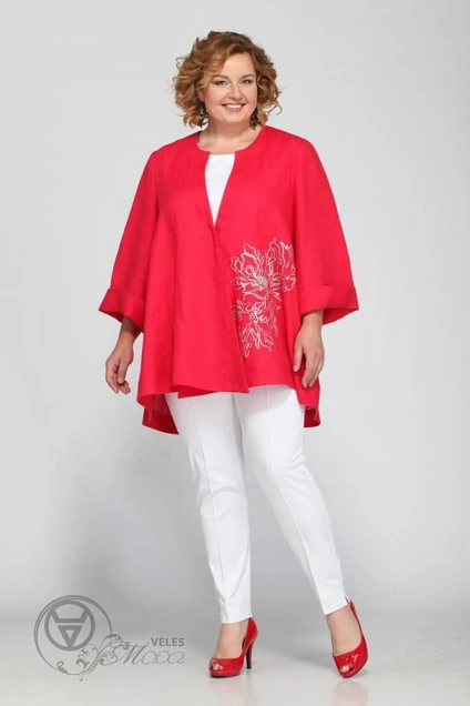 Кардиган женский силуэта трапеция. Вырез горловины V –образный. По левой части переда печать. Спинка со средним швом. Рукав втачной двухшовный. По переду застежкка на пришивную кнопку. Жакет без подкладки. размеры 58 60 62 длина изд. по спинке 85,0 85,0 85,0 ширина спинки 46,0 46,0 46,0 Ширина изделия на уровне глубины пройм 65,0 67,0 69,0 ширина изделия по линии талии 74.0 76.0 78.0 ширина изделия на уровне линии бёдер 86.0 88.0 90.0 ширина изделия внизу 86.0 88.0 90.0 ширина рукава на уровне глубины проймы 22.0 23,0 24.0 длина рукава 53,0 53,0 53,0 Ширина плеча 12.5 12.5 12.5 Ширина рукава внизу 23.0 24.0 25.0