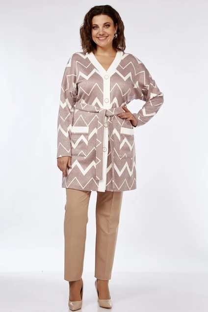 Удлиненный кардиган - это необыкновенно стильно, модно и комфортно. Изделие полуприлегающего силуэта из трикотажного полотна. По центру полочки выполнена планка с застежкой на петли и пуговицы, накладными карманами. Горловина V-образной формы. Рукав со спущенной линией плеча. В комплект входит пояс из основной ткани.