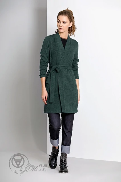 Кардиган выполнен из тонкого трикотажного полотна, рукав втачной. Длина кардигана - 90см.