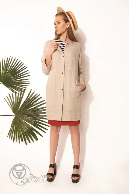 Льняной кардиган очень комфортный в носке, имеет особую, выраженную натуральную фактуру и обладает высочайшими показателями воздухопроницаемости. Данная модель свободного прямого кроя с застежкой в виде кнопок. Нейтральный оттенок даёт огромное преимущество сочетать кардиган с различными элементами гардероба, начиная от узких брюк и заканчивая нарядными платьями и струящимися юбками.