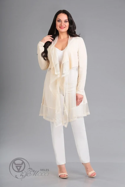 летний кардиган свободного кроя со втачными рукавами, комбинированный из тонкого трикотажа и сетки