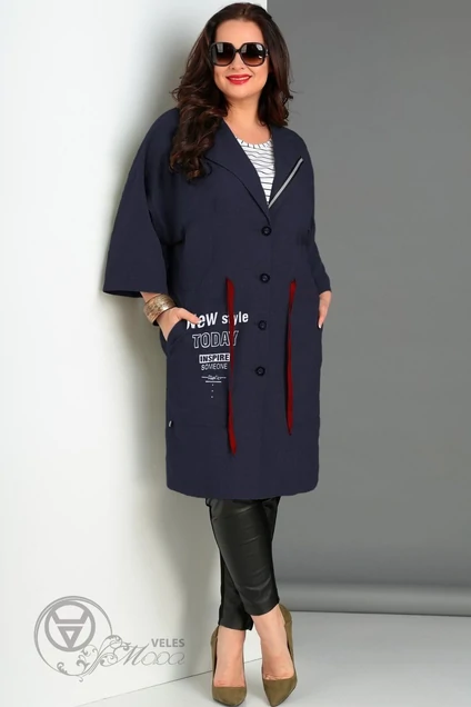 Кардиган свободного кроя, со спущенной проймой из льна «вишера». По переду рельефы, отложные лацканы, накладные карманы, кулиса с декоративной тесьмой в качестве пояса. В боковых швах разрезы. По спинке кокетка и средний шов. Без подкладки. Декор – тесьма на лацкане и карманах, печать со смещением в районе правого кармана. Длина кардигана по спинке - 99 см., рукав + плечо – 58 см. Возможно применение иных элементов декора, не меняющих общий вид изделия.
