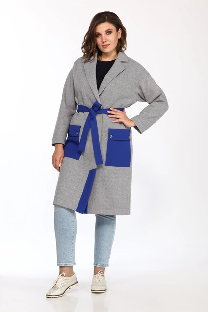 Кардиган женский, прямого силуэта, из пальтового материала. Со спущенной линией плеча. Рубашечными двухшовными рукавами. Спинка цельная. Детали переда с накладными карманами, застегивающимися на петли и пуговицы и отрезными деталями борта из отделочного материала. Воротник пиджачного типа. Кардиган комплектуется съемным поясом. Застежка на две кнопки. Размеры 48-52: 108 см, длина рукава 48 см.