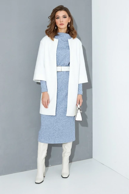 Кардиган из плотной костюмной ткани, прямого силуэта, без застежки, на подкладке. Горловина округлой формы. Перед с нагрудными вытачками. Рукав втачной укороченный, со слегка спущенным плечевым швом. Длина изделия: 83 см