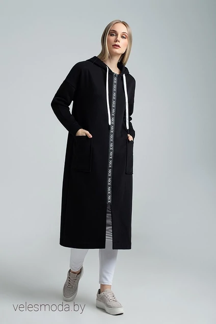 Предлагаем Вашему вниманию утеплённый женский кардиган. Изделие прямого силуэта со спущенным рукавом, выполнен из трикотажной ткани на флисе. Очень тёплый и удобный, подойдёт на любую фигуру. По переду расположены накладные карманы, а также застёжка на молнию в виде отделки. Капюшон с декоративным шнуром. По спинке печать в виде надписи. Кардиган имеет длину до середины голени. Незаменимая вещь в прохладные осенние деньки.