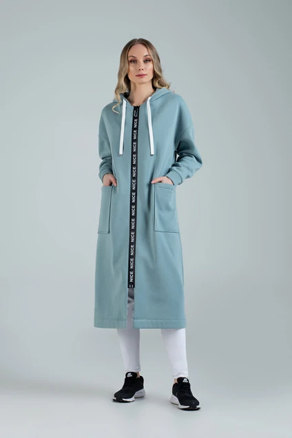 Предлагаем Вашему вниманию утеплённый женский кардиган из футера. Изделие прямого силуэта со спущенным рукавом, выполнен из трикотажной ткани на флисе. Очень тёплый и удобный, подойдёт на любую фигуру. По переду расположены накладные карманы, а также застёжка на молнию в виде отделки. Капюшон с декоративным шнуром. По спинке печать в виде надписи. Кардиган имеет длину до середины голени. Незаменимая вещь в прохладные осенние деньки
