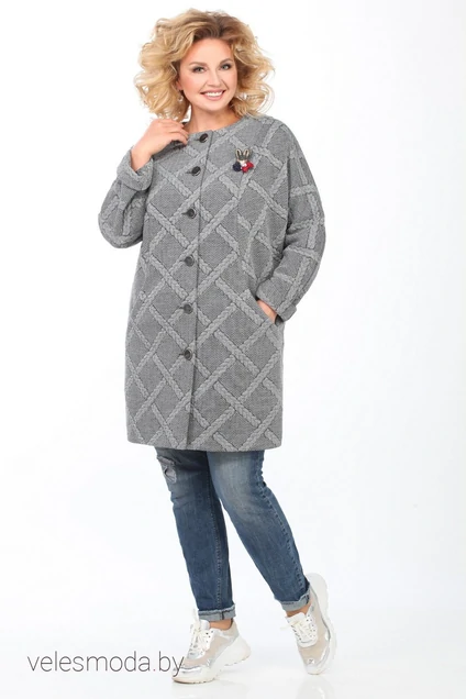 Женский кардиган свободного покроя. Горловина круглой формы. Перед с рельефами. Спинка с рельефами и средним швом. Кардиган с цельнокройными рукавами. Длина рукава может регулироваться отложной манжетой. Полочки с внутренними карманами в швах рельефов. Застежка: центрально-бортовая на петли-пуговицы. Кардиган без подкладки. По рельефам, среднему шву, подгибке низа и рукавам идет отделочная строчка. Длина пальто 88 см. Длина рукава: 61 см. Ширина рукава на уровне низа: 19 см. Реальные параметры изделия 52 от-128см, об-122см, 54 от-132см, об-126см, 56 от-136см, об-130см, 58 от-140см, об-134см, 60 от-144, об-138см, 62 от-148см, об-142см.