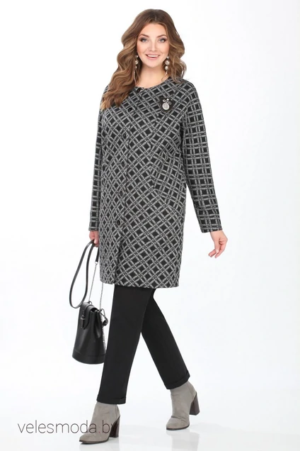 Женский кардиган свободного покроя. Горловина круглой формы. Перед с рельефами. Спинка с рельефами и средним швом. Кардиган с цельнокройными рукавами. Длина рукава может регулироваться отложной манжетой. Полочки с внутренними карманами в швах рельефов. Застежка: центрально-бортовая на петли-пуговицы. Кардиган без подкладки. По рельефам, среднему шву, подгибке низа и рукавам идет отделочная строчка. Длина пальто 88 см. Длина рукава: 61 см. Ширина рукава на уровне низа: 19 см. Реальные параметры изделия 52 от-128см, об-122см, 54 от-132см, об-126см, 56 от-136см, об-130см, 58 от-140см, об-134см, 60 от-144, об-138см, 62 от-148см, об-142см.