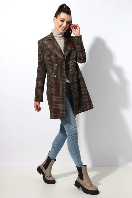 Говорить о необходимости пополнить гардероб кардиганом, не имеет смысла.Сегодня этот элемент одежды имеется у любой модницы. Освежить повседневный аутфит сумеет кардиган в клетку – это практичная и стильная вещь на все случаи жизни. Изделие полуприлегающего силуэта на подкладке с двубортной застежкой на петли пуговицы. Воротник пиджачного типа с отложными бортами. Рукав втачной. Карманы функциональные. Изделие изготовлено из текстильной ткани. Подкладка ПЭ 100%.Длина по спинке 84 см, рукав 61 см. Кардиган подойдет на рост 164-170.