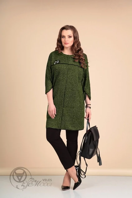 Силуэт прямой, рукав цельнокроенный, спереди потойная застежка на пуговицы, по спинке - 92см, брошь в комплекте.