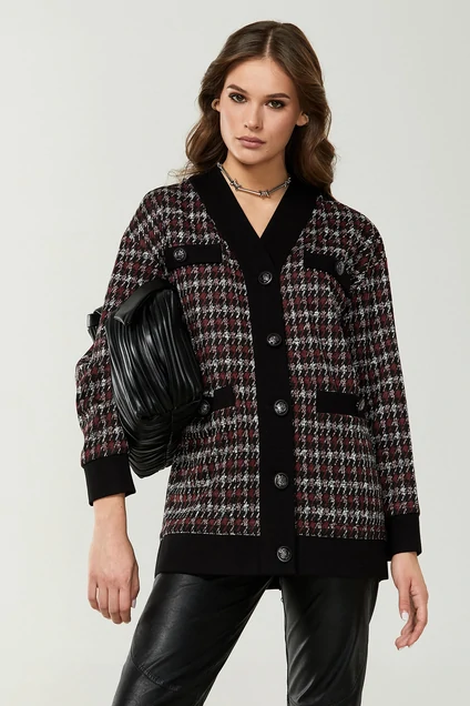 Кардиган оверсайз на пуговицах, с принтом и декоративными вставками из черного трикотажа