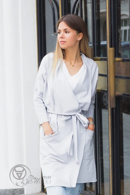 Удобый стильный Кардиган свободного кроя. Выполнен из высококачественного трикотажного полотна. На полочке 2 больших накладных кармана. .Можно носить как с поясом так и без. Длина изделия от плеча: 94-98-104см