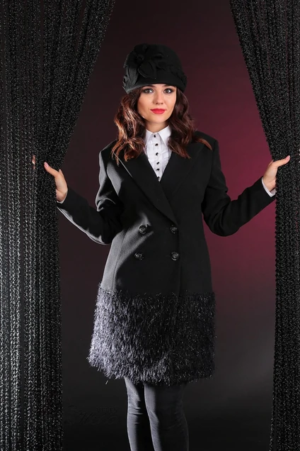 Кардиган прилегающего силуэта, удлиненный. По низу жакета притачная деталь из отделочного материала. По переду и спинке жакета отрезные бочки, выходящие из проймы. Рукав втачной, двухшовный. Спинка со средним швом, жакет на подкладке. Кардиган из новой новогодней коллекции станет прекрасным дополнением к Вашему вечернему образу и избавит от необходимости надевать скучную верхнюю одежду поверх изысканного наряда.