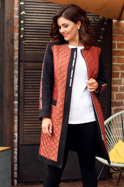Кардиган в спортивном стиле. Удобное решение на каждый день. Выполнен из материала на синтепоне в сочетании с трикотажным полотном. Полочка с рельефами, накладными карманами и отрезной кокеткой. Спинка со средним швом и рельефами. Низ изделия с притачной планкой. Рукав втачной двухшовный с притачной манжетой. Застежка центральная на молнию. Рукава и центральная планка переда декорированы черно-белой тесьмой в сочетании с пуговицами.