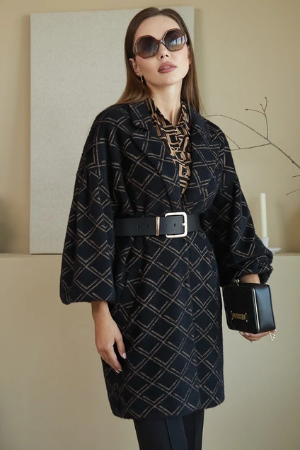 Элегантный теплый кардиган из плотного трикотажного полотна с содержанием ангоры. Изделие на подкладке, длиной ниже линии бедер. Центральная бортовая застежка на потайные кнопки. Воротник пиджачного типа. На полочках прорезные карманы с листочками. Борта прямые. Спинка прямая. Спущенная линия плеча. Объемный рукав. По окату рукава – мягкие складки. Низ рукава на притачной манжете.