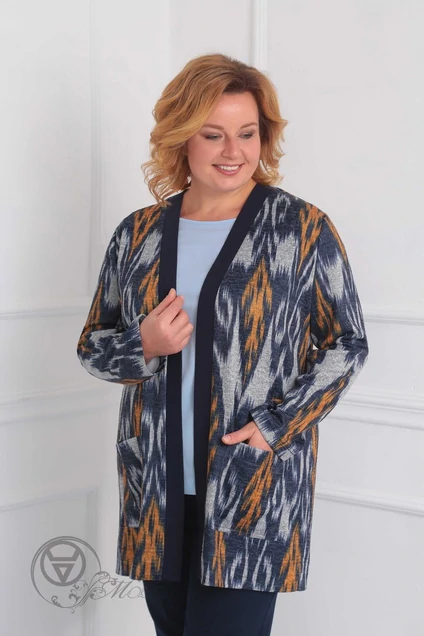 Кардиган 922 синий+серый+оранж Орхидея Люкс