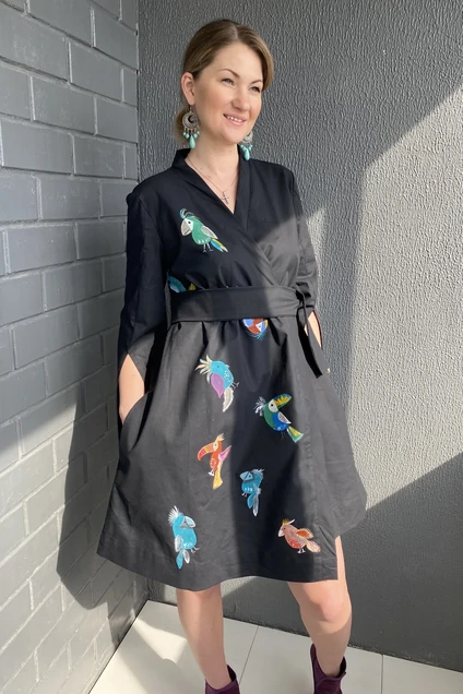Платье-кимоно с ручной росписью длинною мини.