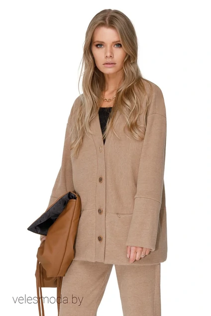 Трикотажный кардиган свободного покроя. Детали: кардиган прямого силуэта, спущенная линия плеча, застежка на петли и декоративные пуговицы, перед с функциональными карманами и застежкой на потайную молнию, на подкладке