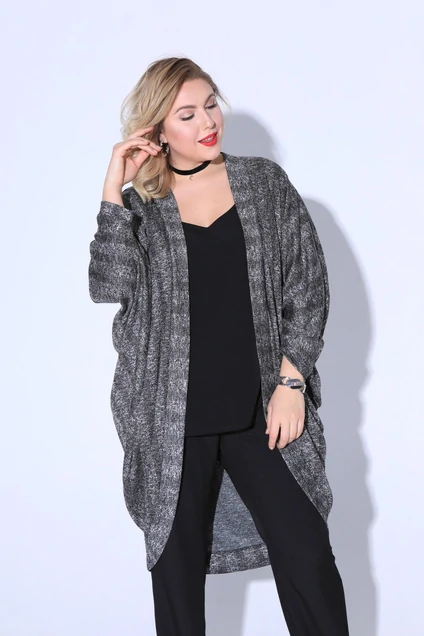 Трикотажный кардиган без застёжки, с цельновыкроенными рукавами. Борта, горловина и низ рукавов обработаны планками.