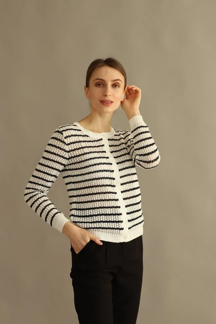 Классический универсальный женский жакет выполнен из мягкой и уютной хлопковой пряжи. В нашем жакете Вы будете чувствовать себя комфортно. К тому же жакеты Romgil, как отличные базовые элементы гардероба, легко сочетаются в повседневном, офисном, вечернем и классическом стиле. Носи с классическими брюками, брюками палаццо, джинсами, юбками-плиссе и шортами. Идеально подходит для повседневной носки. Приятный к телу и легкий в уходе, после стирки - не линяет, не изменяет форму.