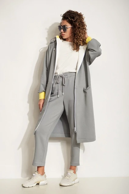 Кардиган из приятного к телу турецкого хлопкового трикотажа. Кардиган с капюшоном, с карманами в рельефе. Спинка регулируется на кулису. Рукава и капюшон с контрастным трикотажным довязом. Кардиган будет универсальной вещью Вашего гардероба.