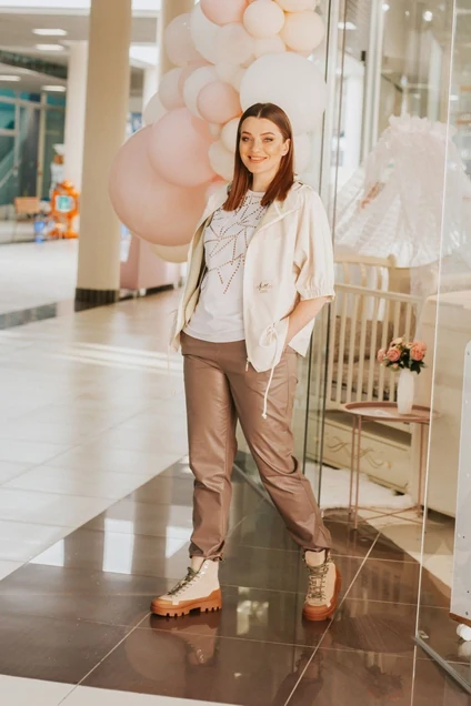 Модный женский блейзер-парка "оверсайз" из текстильной ткани под кожу с цельнокроенным рукавом. По низу рукава, средняя часть присборена на резинку. По переду и спинке-подрезные кокетки и рельефы. По переду в рельефах-функциональные карманы. Горловина оформлена капюшоном. Застежка спереди по центру на тесьму-молнию. По линии талии настрочена кулиска и продет отделочный шнур. На полочке-декоративная нашивка. Блейзер без подкладки.