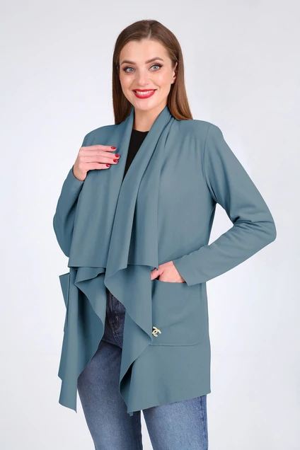 Кардиган, женский, свободного покроя, не стесняющая движений, с фигурной формой бортов. При этом он отлично защищает от холода.