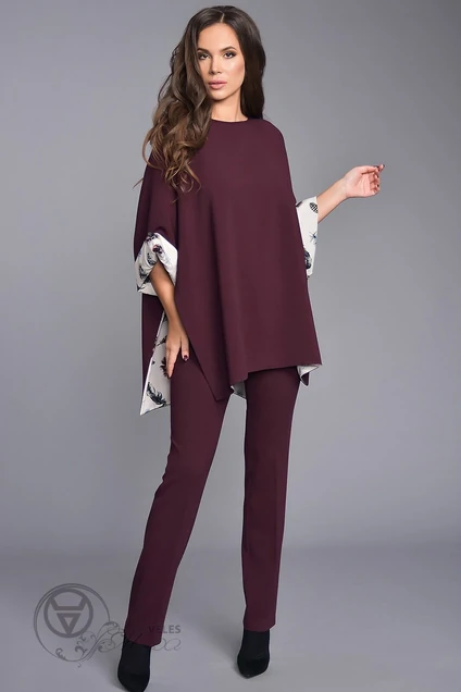 Пончо (накидка) двухсторонняя, цельнокроенная, свободного силуэта. Горловина обработана узкой бейкой. Рукава цельнокроеные, с отворачивающейся манжетой, застегивающейся на декоративную пуговицу. Длина изделия – 75см (±2) Длина рукава с плечом – 55см (±2) Ткань: верх - костюмно-плательная н/часть- стрейч-шифон.