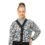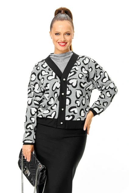Стильный трикотажный укороченный кардиган в современном сочетании дизайн «сердце» и черного.
