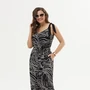 Элегантный комбинезон в зебровый принт, идеальное сочетание стиля и комфорта. Эта модель относится к нарядной группе и обладает прилегающим силуэтом, подчеркивая фигуру. Талия эффектно собрана на резинке и дополнена элегантным поясом, который подчеркивает изящество силуэта. Верх комбинезона оформлен нагрудными выточками и имеет бретели с завязками, позволяющие регулировать их длину для идеальной посадки. Боковая молния обеспечивает удобство при надевании. Длинные брюки с длиной 108 см завершаются стильными разрезами, добавляющими изысканности образу. Длина лифа составляет 33 см до завязок, обеспечивая элегантную отделку верхней части комбинезона. Этот наряд подойдет на различные торжественные и вечерние мероприятия, добавляя утонченности любому образу.