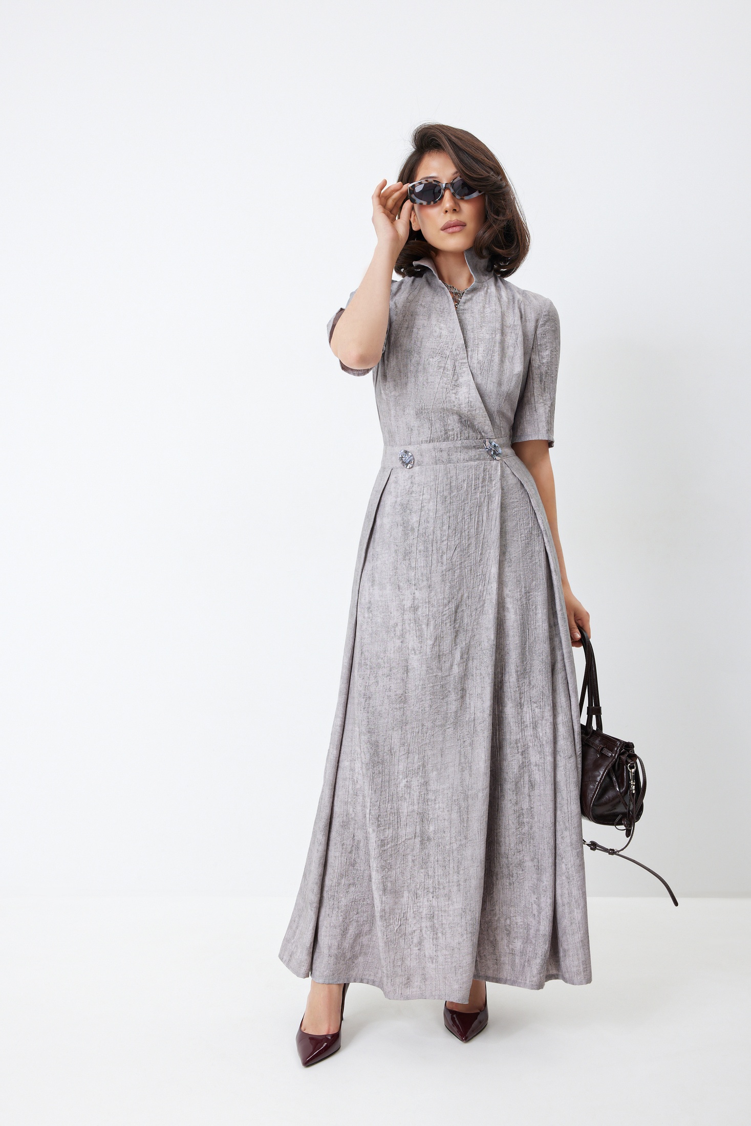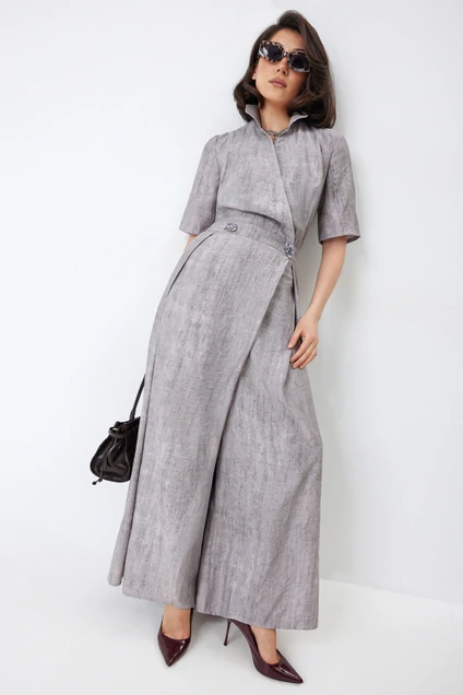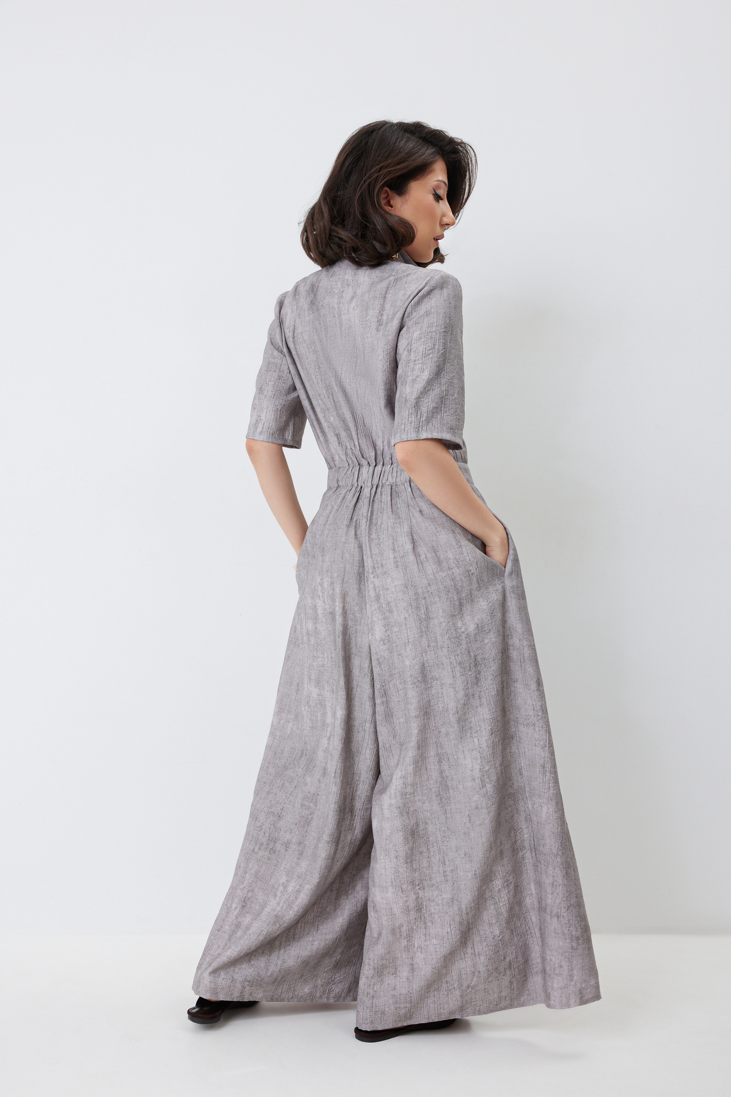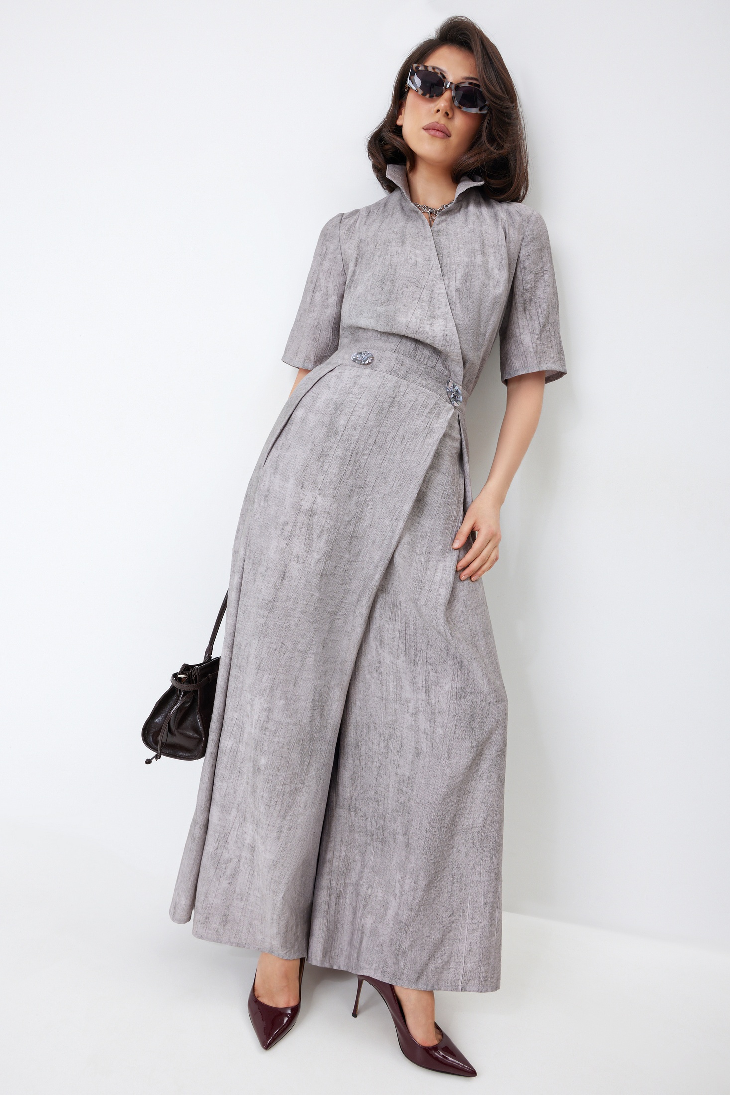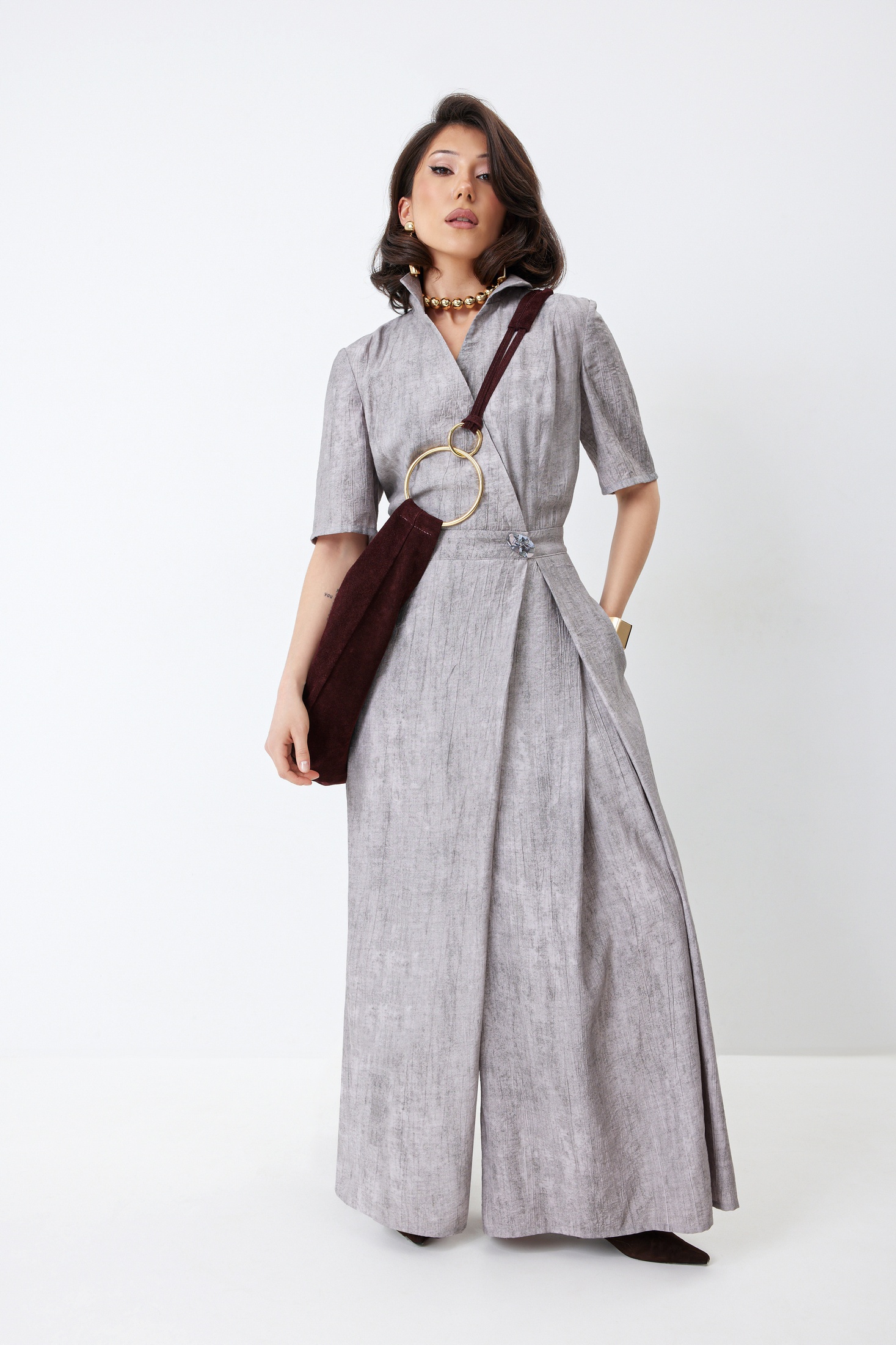 Комбинезон 1330 ElPaiz — стильный и удобный выбор для современного гардероба. Коллекция бренда ElPaiz отличается комфортом и практичностью. Этот комбинезон выполнен из вискозы с добавлением нейлона, что обеспечивает мягкость материала и легкость ухода. Свободный фасон с имитацией запаха и отрезной линией талии добавляет женственности и свободы движений. Застежка на пуговицы и потайная магнитная кнопка обеспечивают удобство в носке, а карманы в боковых швах практичны и функциональны. Короткий рукав делает его подходящим для летнего и весеннего сезона. Серо-коричневый цвет подчеркивает универсальный стиль, подходящий для повседневной носки и разнообразных образов.
