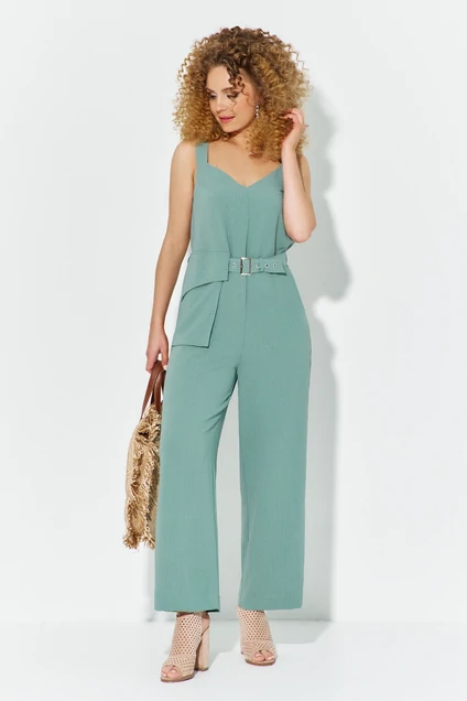 Комбинезон 603 бирюзовый Euro Moda — это стильное решение для летних дней. Коллекция бренда Euro Moda предлагает этот комбинезон из 100% полиэстера, который обеспечивает легкость и комфорт в каждодневной носке. Модель свободного кроя с широкими укороченными брюками обеспечивает свободу движений. Акцент на фигуре создается за счет съемного пояса. Комбинезон имеет накладные карманы с клапанами на брючинах и спинке, что добавляет практичности и стиля. Элегантный бирюзовый цвет подчеркивает свежесть и летнее настроение изделия, идеальное для повседневного и молодежного стиля. Без застежек, он легко надевается и снимается, идеально подходит для жаркого летнего сезона.