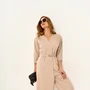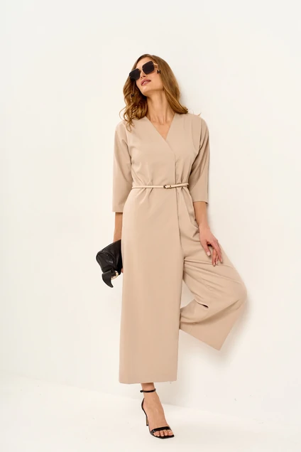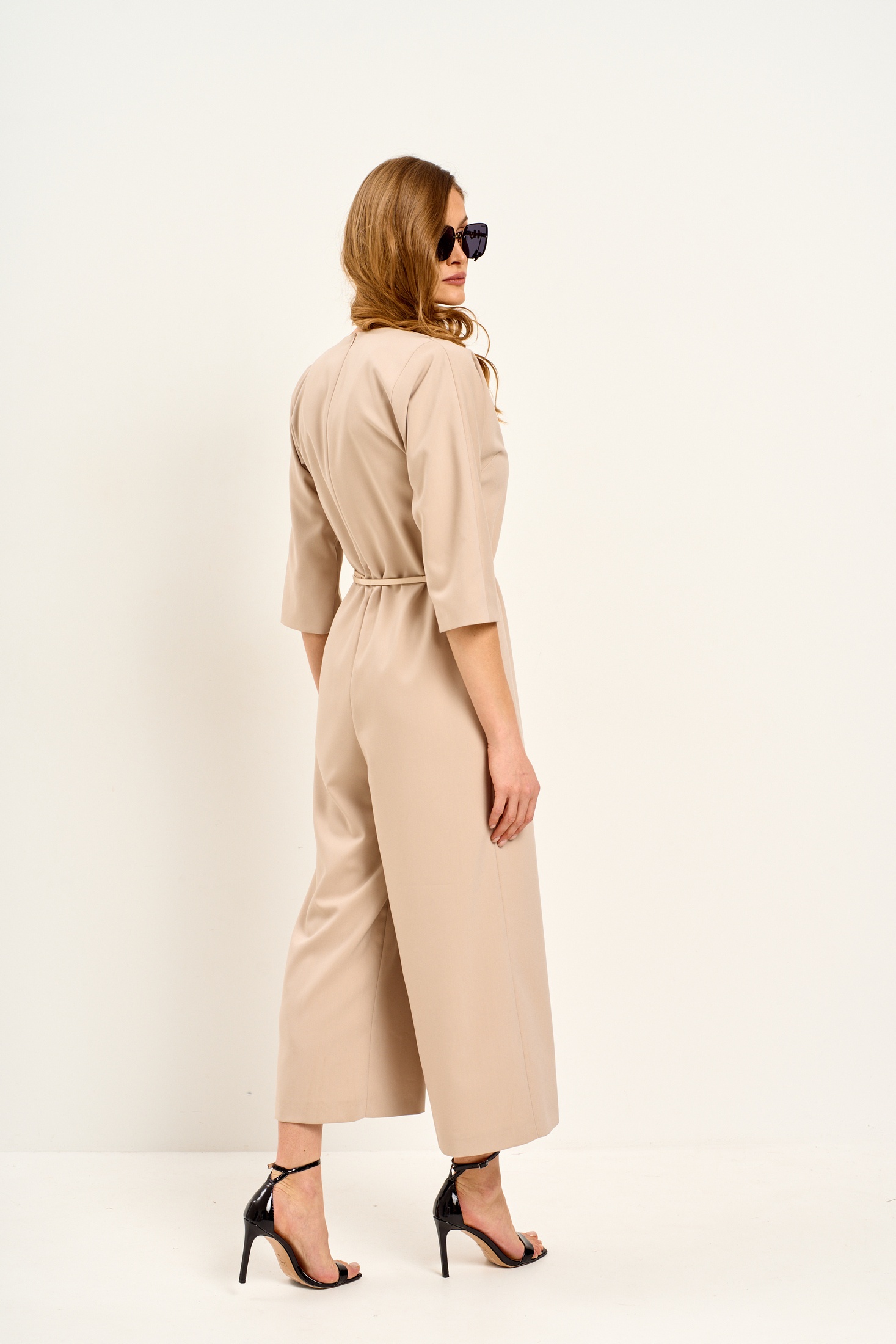 Комбинезон женский, свободного кроя с рукавом покроя "реглан" . На деталях переда обработаны карманы в швах. По лифу заложена складка для свободного облегания. Застежка на тесьму "молния" в среднем шве спинки. В комплекте идет пояс.