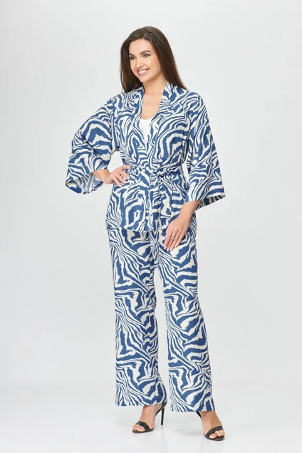 Комплект женского кимоно брюки и жакет - отличный выбор для тех, кто уважает стиль, комфорт и удобство. Изготовленный из легкой вискозной ткани, верх кимоно имеет свободный силуэт, проймы спущены и выполнена стойка в цельнокроеном стиле. Рукава три четверти с широкими манжетами создают потрясающе изящный вид. Тонкие внутренние пояски на талии обеспечивают удобство и возможность сделать широкий пояс для дополнительного регулирования. Классические брюки в стиле палаццо удобно располагаются на резинке, а область резинки имеет три отделочные строчки для лучшей посадки на талии. Этот брючный костюм женские праздничные идеально подходит для летнего офиса, а также вечерних мероприятий. Это непревзойденный вариант для женщин, которые следят за своим стилем. Нотки турецкого стиля от нашего дизайнера в женском летнем костюме созданы специально для наших очаровательных модниц, в ритме современных тенденций. В отличии от костюма с юбкой, он сочетает в себе японское наследие и современный турецкий дизайн. Женский брючный комплект кимоно вы получаете, дизайнерский костюм, кимоно с длинными рукавами и широкими брюками, выполненными из легкой ткани, которая не сковывает движения в жаркую погоду. Комфортная и элегантная одежда для повседневной носки или для посещения пляжа. Универсальный костюм, который можно носить как деловой, так и нарядный стиль. Широкий выбор размеров и цветов позволит выбрать идеальный вариант именно для вас. Оригинальность и стиль - гарантированы. Не упустите свой шанс стать обладательницей этого модного женского кимоно комплекта на лето!