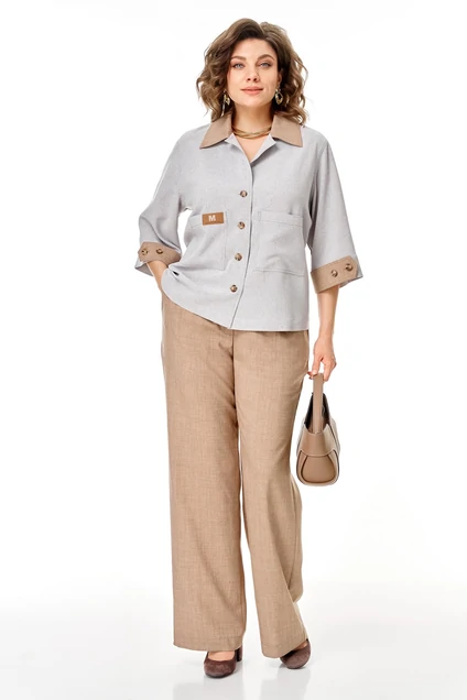 Костюм брючный 24255 серо-бежевый AIRA style — воплощение повседневно-делового стиля. Коллекция бренда AIRA предлагает комплект из свободной блузы и прямых брюк, идеально сочетающихся в серо-бежевой гамме. Материалы включают полиэстер, вискозу и спандекс для блузы, а также вискозу и нейлон для брюк, что обеспечивает комфорт и прочность. Блуза с контрастным воротником и манжетами добавляет стильности, накладные карманы повышают практичность, а пуговицы обеспечивают удобство. Широкие брюки визуально удлиняют силуэт, добавляя утонченности. Этот костюм станет универсальным решением для повседневной носки в любое время года.