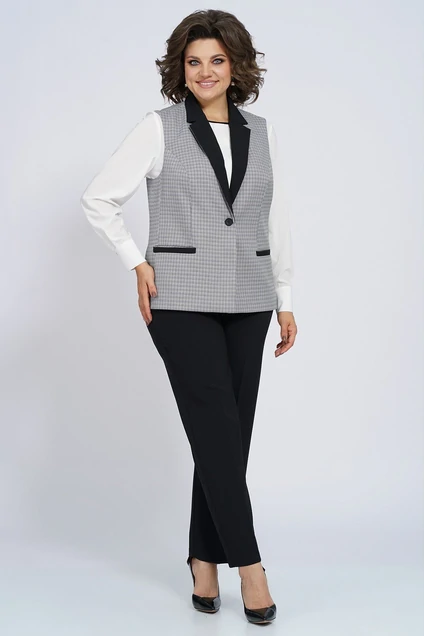 Комплект женский 3-х предметный состоит из жилета, блузки и брюк.
