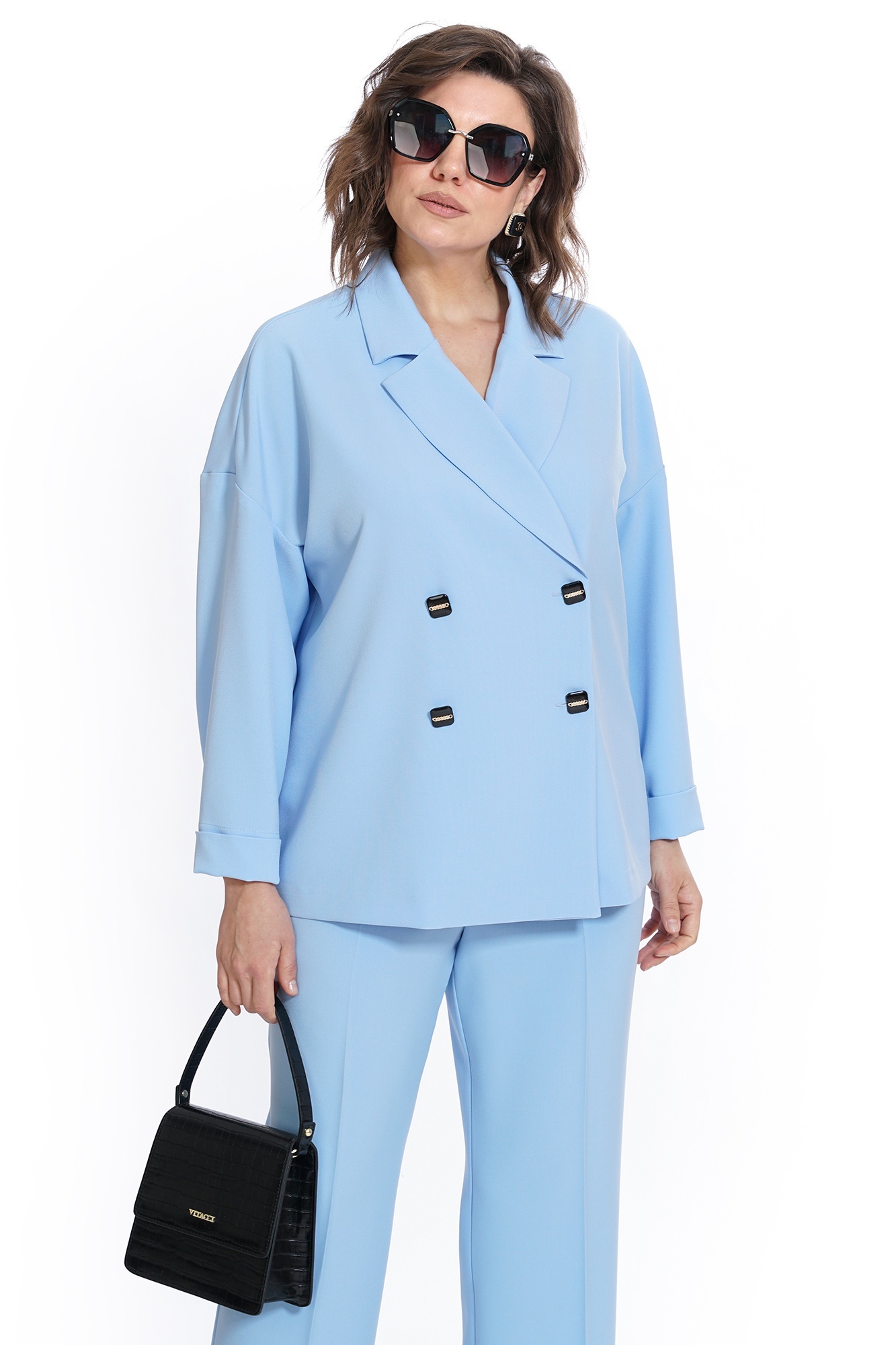 Костюм брючный 2437 голубой ALANI — это стильное и универсальное решение для делового гардероба. Коллекция бренда ALANI предлагает жакет прямого, свободного силуэта, без подкладки, с двух-бортной застёжкой и лацканами. Изготовлен из сочетания полиэстера и эластана, что обеспечивает комфорт и лёгкость в носке. Брюки прямого силуэта со сгибом подчеркнут элегантность образа, а притачной пояс с резинкой добавляет удобства. Спущенная линия плеча и имитация боковых карманов придают костюму современность. Лёгкий и непринуждённый стиль подходит для весеннего и летнего сезона, обеспечивая отличные свойства для повседневной носки. Голубой цвет костюма добавляет свежести и яркости в ваш гардероб.