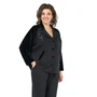 Блуза прямого силуэта, с разрезом по среднему шву спинки и застёжкой на навесную петлю и пуговицу, понизу боковых швов разрезы.