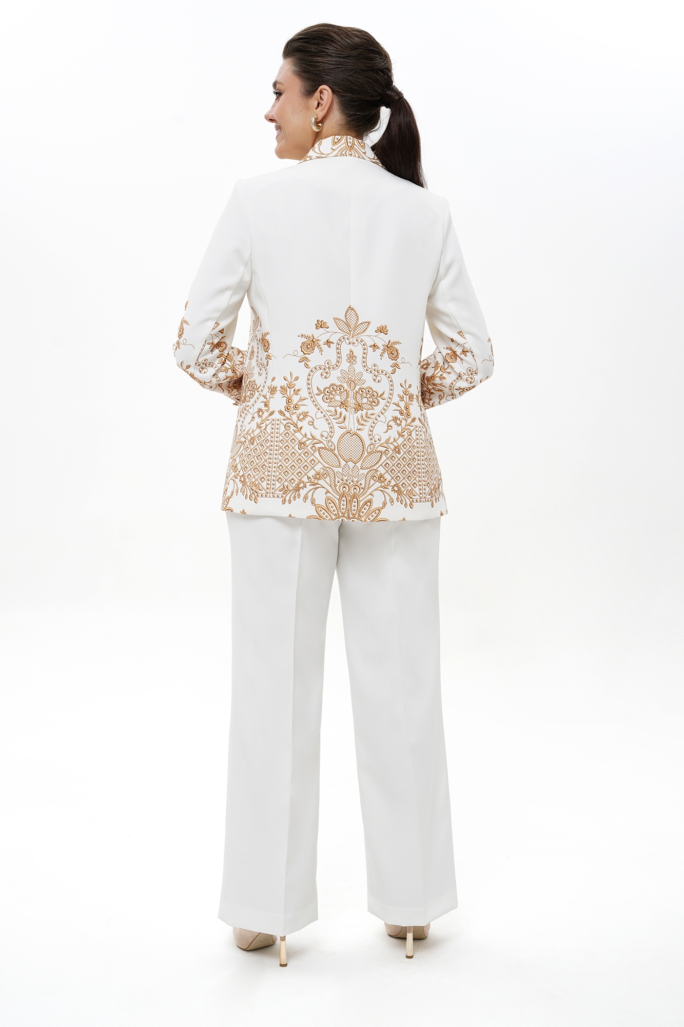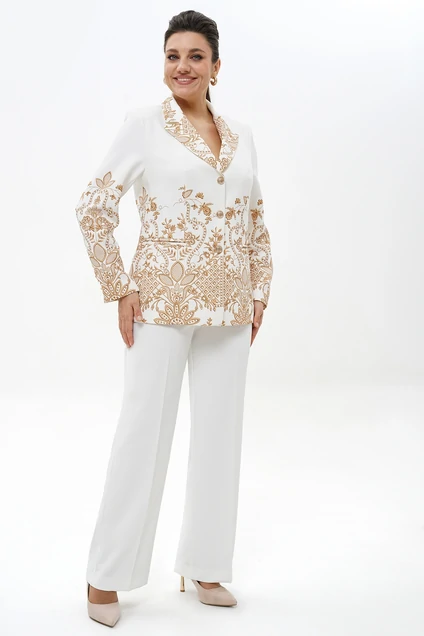 Костюм брючный 2496 молоко + золото ALANI