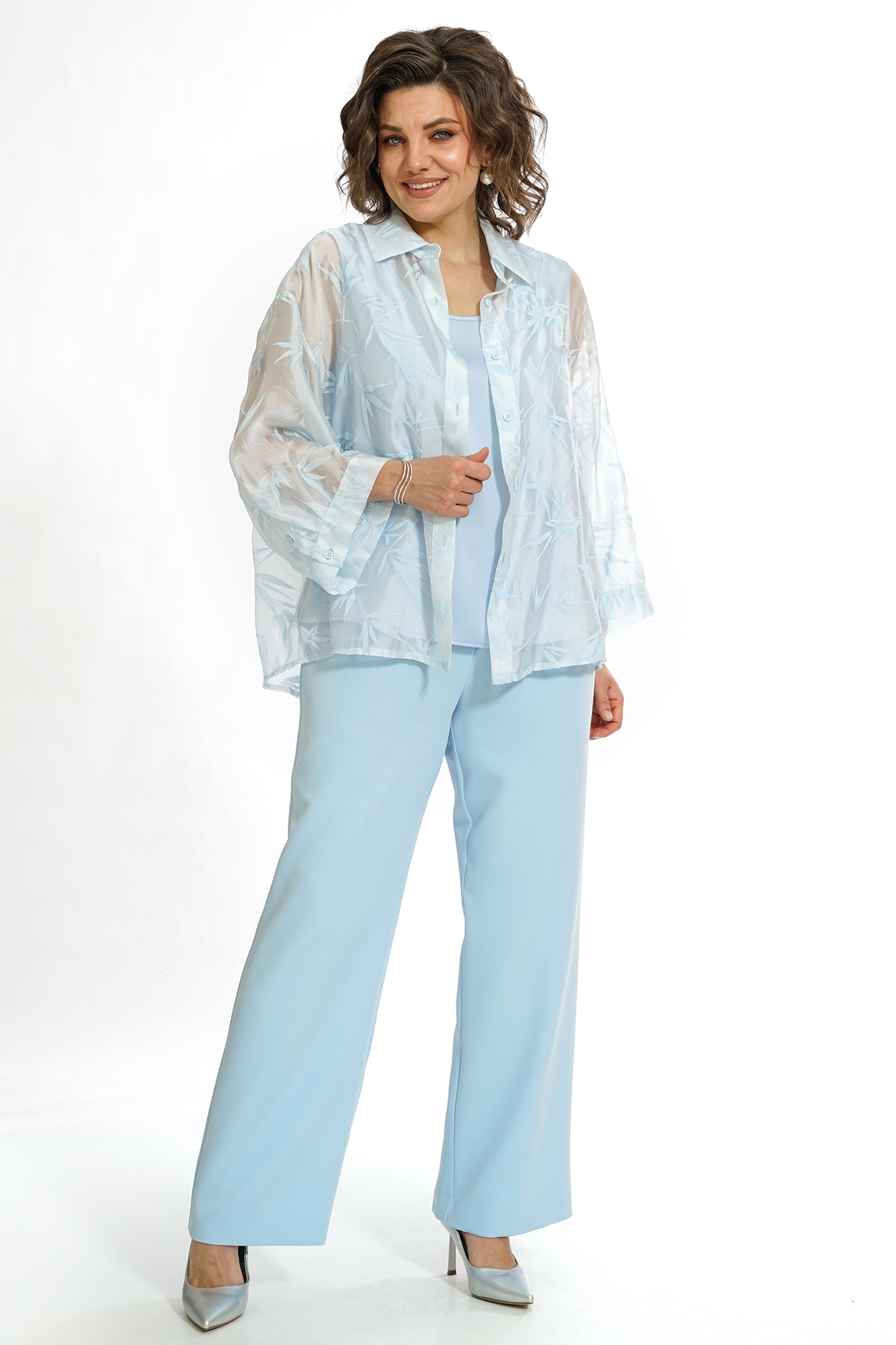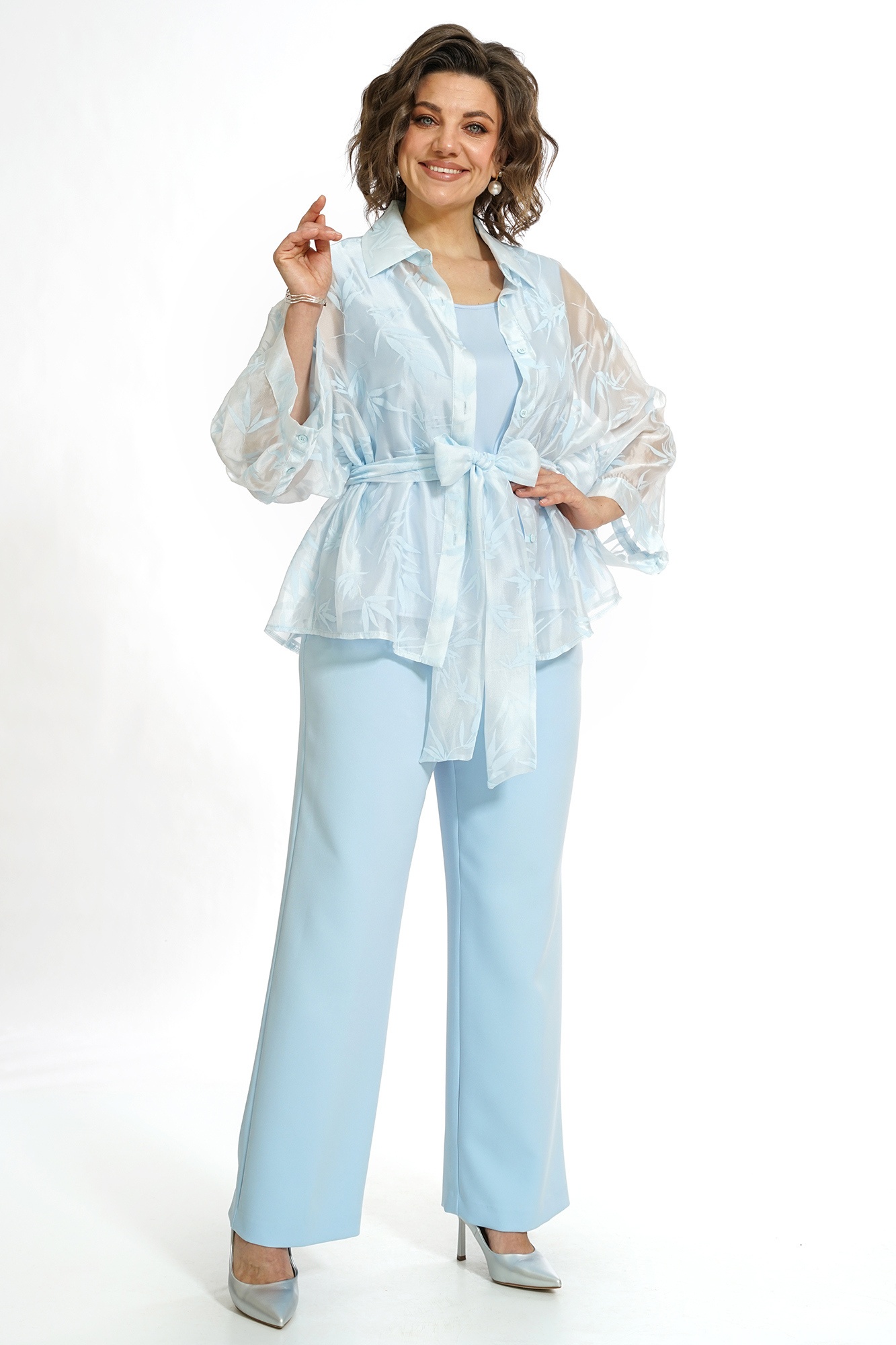 Костюм брючный 2552 голубой ALANI — элегантный выбор для современного гардероба. Коллекция бренда ALANI предлагает женственный комплект из блузки, блузы и брюк, идеальный для повседневного стиля. Изготовленный из полиэстера, вискозы и спандекса, костюм отличается легкостью и комфортом. Блузка свободного силуэта с удлинённой линией плеча и завязывающимся поясом подчеркнёт вашу индивидуальность. Брюки прямого кроя на резинке подарят удобство и свободное движение. Голубой оттенок придаёт образу свежесть, а классический стиль делает костюм подходящим для любых сезонов.