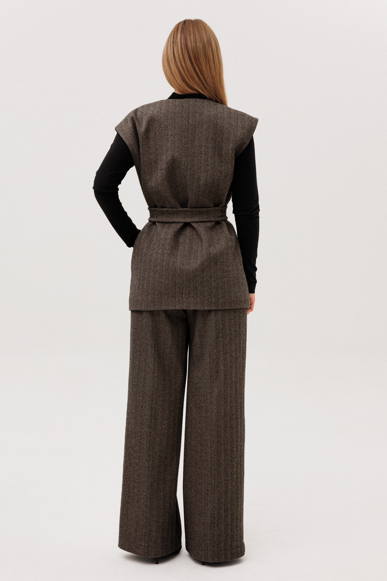 Костюм брючный 2142 Ambera style от Ambera — это идеальный выбор для повседневного и офисного стиля. Коллекция бренда включает в себя жилет свободного кроя с действующими карманами и металлической молнией, а также брюки с высокой посадкой и прямыми линиями. Изготовленные из сочетания полиамида, кашемира, шерсти и спандекса, костюм обеспечивает комфорт и тепло, идеально подходя для осенне-зимнего сезона. Пояс с пряжкой добавляет функциональности и акцент на талии. Дизайн в бордовом цвете подчеркивает стильность и лёгкость образа.