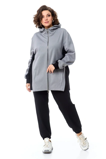 Костюм для активного образа жизни из высококачественной комбинированной трикотажной ткани состоящий из брюк и кофты на замке свободного кроя.
