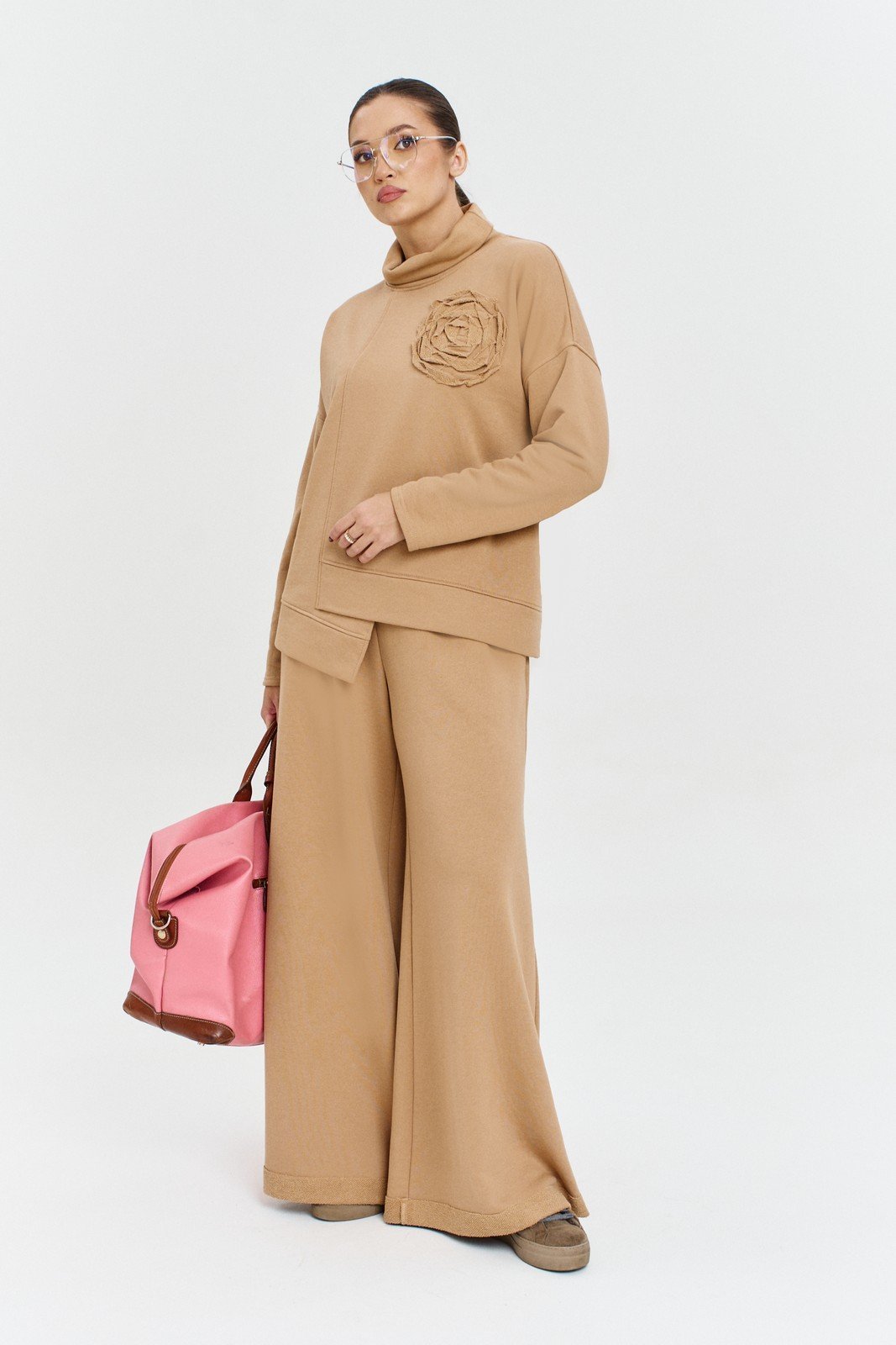 Шикарный трикотажный женский костюм от бренда Anastasia, идеальный для любого случая. Этот костюм сочетает в себе элегантность и комфорт, что делает его подходящим как для деловых встреч или домашней одежды, так и для праздничных мероприятий Идеальный на холодную погоду. Блуза прямого силуэта со спущенным плечом, низ по полочке фигурный, асимметричный и подрез в виде запаха. По низу снинки и полочки идет отрезной пояс. По полочке -декор в виде настроченного цветка из этой же ткани. Воротник - стойка хамут. Брюки, расширенные к низу, пояс на резинке, по бокам карманы. Отворот по низу на изнанку.Это не только универсальная одежда для деловых встреч или прогулок, но и идеальный выбор для различных торжественных мероприятий, подойдет как для взрослых женщин, так и для подростков. Отдельный части костюма легко будут сочетаться с вещами из Вашего гардероба. Модель можно отнести к стилю спортивный кэжуал, оверсайз, спортивный шик. Костюм можно носить с кроссовками или ботинками. Обязательно добавьте наш бренд в избранное и следите за новинками, распродажами, скидками и акциями! Хороших покупок от «Анастасия» Длина блузы (по спинке):(50-54)- 61см, (56-60)-62 см. Длина рукава: (50-60)-45см. Длина брюк: (50-54): 101см, (56-60)-104см